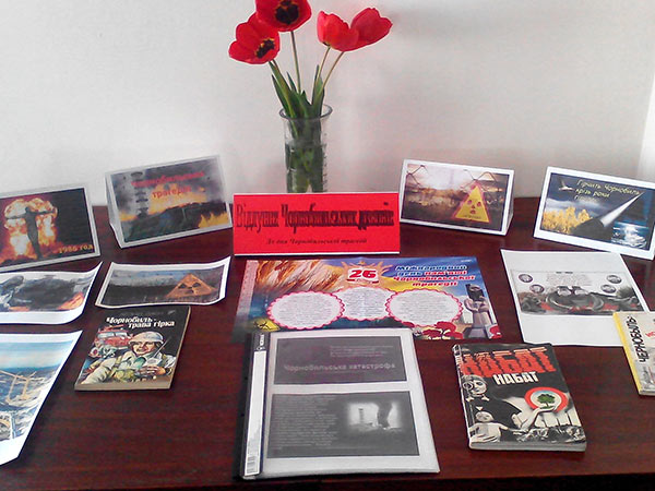 До дня Чорнобильської трагедії у читальному залі бібліотеки коледжу діє виставка «Відлуння Чорнобильських дзвонів».